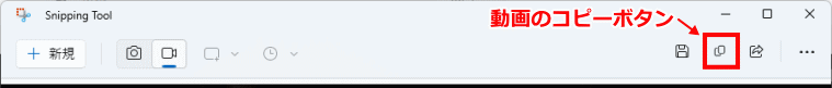 「コピー」アイコンをクリックすると、録画した動画がクリップボードにコピーされます。任意のフォルダを開いて右クリックで「貼り付け」を行えば、動画を保存できます。
