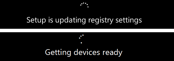 再起動後、デバイスやレジストリなどのセットアップが行われ、終了すると自動で再起動し次のステップへ進みます。